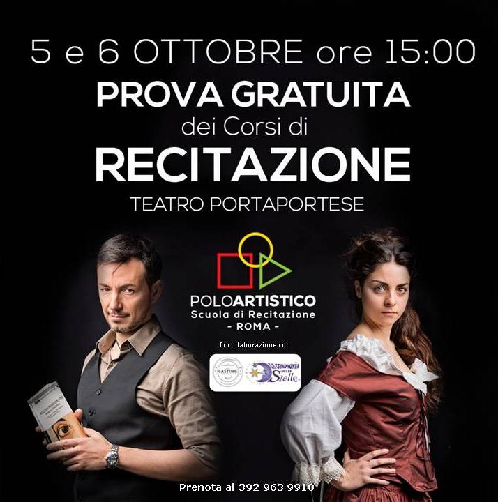 Corsi di Recitazione5 e 6 OTTOBRE 2018 - ore 15.00Ultima Open Day: venerdi 5 e sabato 6 Ottobre, alle Ore15.00